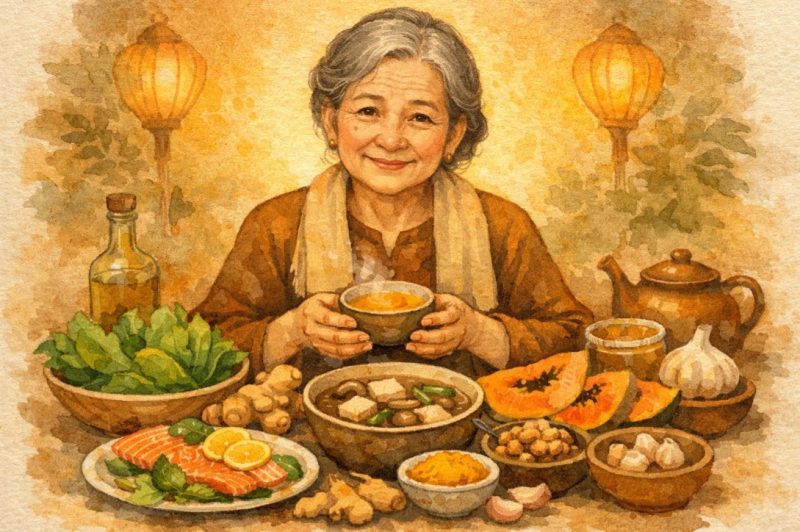 Trong Y học cổ truyền (YHCT), làn da không chỉ là lớp màng bao bọc mà còn là tấm gương phản chiếu sức khỏe của Phế (phổi), Tỳ (tiêu hóa) và Gan (giải độc). Khi chính khí suy yếu, tà khí bên ngoài như Phong, Hàn, Thấp, Nhiệt dễ dàng xâm nhập. Đặc biệt là Thấp Nhiệt (nóng và ẩm) tích tụ lâu ngày dưới da sẽ gây nên tình trạng viêm, sưng, chảy dịch và ngứa ngáy điên cuồng. Để trị dứt điểm, chúng ta không thể chỉ cậy nhờ vào thuốc, mà phải biết mượn sức mạnh từ chính mâm cơm hàng ngày. “”Dùng thực phẩm làm thuốc”” là cách nhẹ nhàng nhất nhưng lại bền bỉ nhất để nuôi dưỡng lại tạng hư, thanh lọc huyết quản, từ đó giúp làn da tìm lại sự bình yên vốn có.