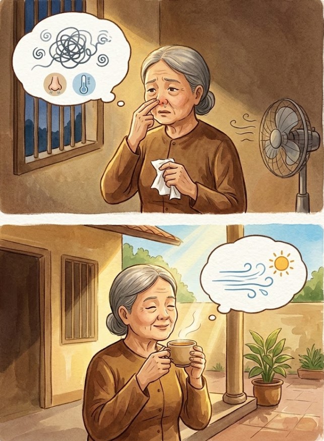 Cô bác anh chị thân mến, có bao giờ mọi người tự hỏi tại sao cơ thể mình lại giống như một chiếc phong vũ biểu nhạy cảm đến thế không? Cứ mỗi sáng thức dậy, khi vạn vật còn đang chìm trong hơi sương, chiếc mũi của chúng ta lại “biểu tình” bằng sự nghẹt cứng, khó thở, thậm chí là hắt hơi liên hồi. Thế nhưng, kỳ lạ thay, chỉ cần nắng lên đến đỉnh đầu, khi hơi ấm lan tỏa khắp không gian thì cái sự khó chịu ấy lại tự nhiên tan biến như chưa từng xuất hiện. Nhiều người tặc lưỡi cho rằng đó là “chuyện thường tình” của thời tiết, nhưng dưới con mắt của Y học cổ truyền, đó chính là tiếng kêu cứu từ bên trong, là dấu hiệu cho thấy sự mất cân bằng giữa chính khí và tà khí, giữa cái ấm nóng và cái giá lạnh trong cơ thể chúng ta.